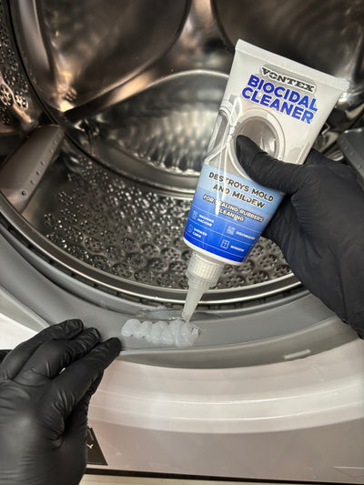 No harsh scrubbing. No mess. Just apply, wait, and wipe away stains on rubber seals and other surfaces in your home